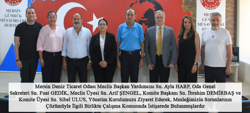 Mersin Deniz Ticaret Odası Meclis Başkan Yardımcısı Sn. Ayla HARP, Oda Genel Sekreteri Sn. Fuat GEDİK, Meclis Üyesi Sn. Arif ŞENGEL, Komite Başkanı Sn. İbrahim DEMİRBAŞ ve Komite Üyesi Sn. Sibel ULUS, Yönetim Kurulumuzu Ziyaret Ederek, Mesleğimizin Sorunlarının Çözümüyle İlgili Birlikte Çalışma Konusunda İstişarede Bulunmuşlardır