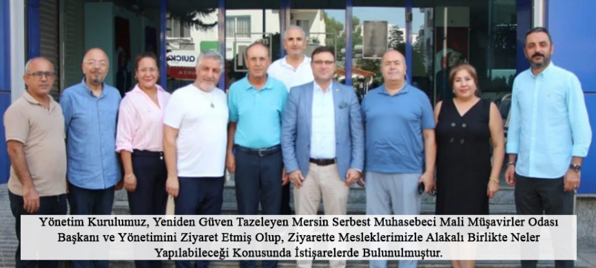 Yönetim Kurulumuz, Yeniden Güven Tazeleyen Mersin Serbest Muhasebeci Mali Müşavirleri Odası Başkanı ve Yönetimini Ziyaret Etmiş Olup, Ziyarette Mesleklerimizle Alakalı Birlikte Neler Yapılabileceği Konusunda İstişarelerde Bulunulmuştur.