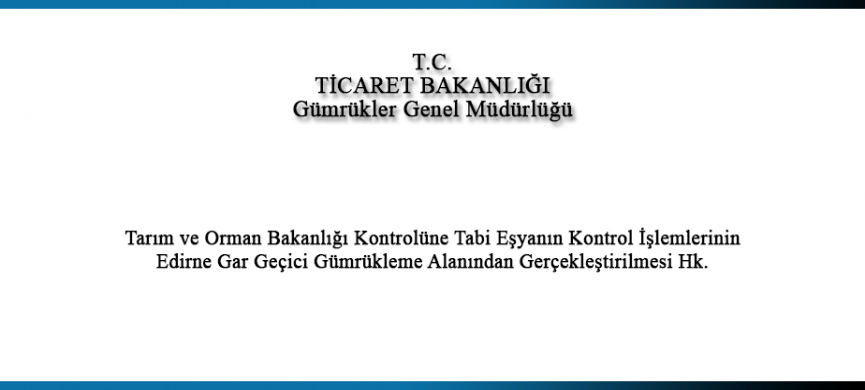 GGM / Tarım ve Orman Bakanlığı Kontrolüne Tabi Eşyanın Kontrol İşlemlerinin Edirne Gar Geçici Gümrükleme Alanından Gerçekleştirilmesi Hk.