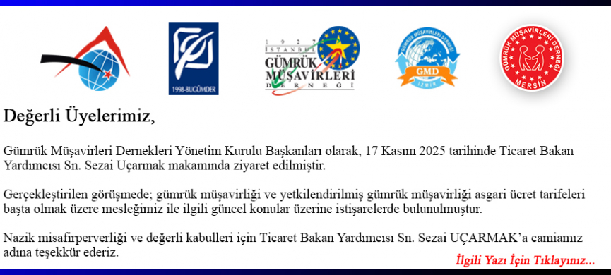 Dernekler Ortak Duyurusu / Ticaret Bakan Yardımcısı Sn. Sezai UÇARMAK'a Ziyaret