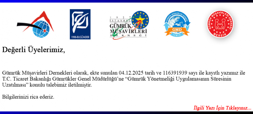 Dernekler Ortak Duyurusu / Gümrük Yönetmeliği Uygulamasının Süresinin Uzatılması Hk.