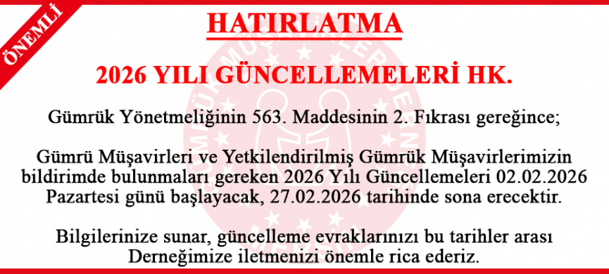 HATIRLATMA: 2026 Güncellemeleri Hk.