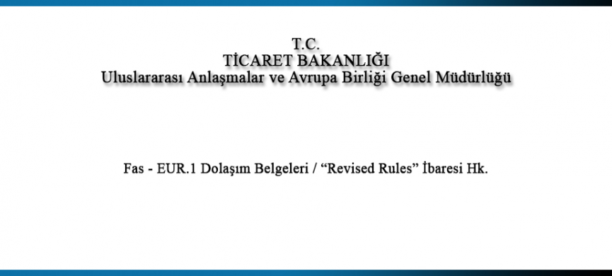 Uluslararası Anlaşmalar ve Avrupa Birliği Genel Müdürlüğü / Fas - EUR.1 Dolaşım Belgeleri / ?Revised Rules? İbaresi Hk.