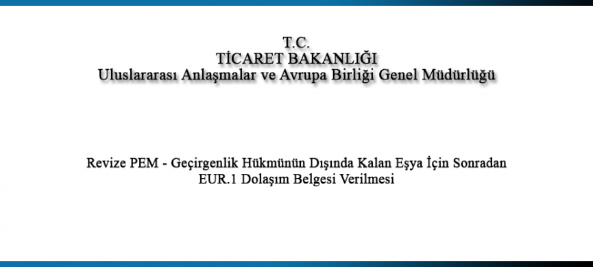 Uluslararası Anlaşmalar ve Avrupa Birliği Genel Müdürlüğü / Revize PEM - Geçirgenlik Hükmünün Dışında Kalan Eşya İçin Sonradan EUR.1 Dolaşım Belgesi Verilmesi