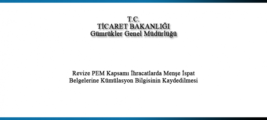 GGM / Revize PEM Kapsamı İhracatlarda Menşe İspat Belgelerine Kümülasyon Bilgisinin Kaydedilmesi