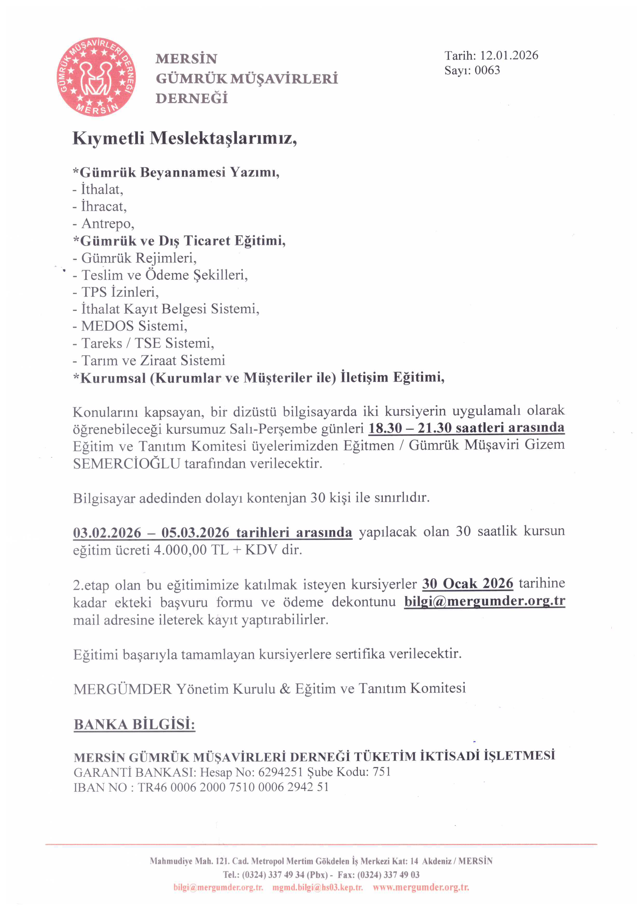 İKİNCİ GÜMRÜK BEYANNAME YAZIMI VE MÜŞTERİ TEMSİLCİLİĞİ EĞİTİMİ DUYURUSU / GÜMRÜK MÜŞAVİRLİĞİ FİRMALARIMIZDA ÇALIŞAN, KENDİNİ GELİŞTİRMEK İSTEYEN, İYİ BİR KARİYER HEDEFLEYEN ADAYLARA YÖNELİK BEYANNAME YAZIMI VE MÜŞTERİ TEMSİLCİLİĞİ EĞİTİM PROGRAMIMIZ BAŞLIYOR