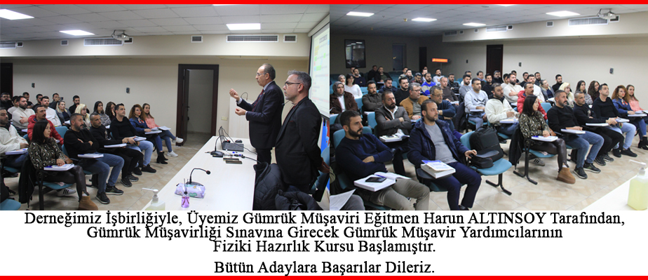Derneğimiz İşbirliğiyle, Üyemiz Gümrük Müşaviri Eğitmen Harun ALTINSOYTarafından, Gümrük Müşavirliği Sınavına Girecek Gümrük Müşavir Yardımcılarının Fiziki Hazırlık Kursu Başlamıştır