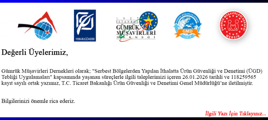 Dernekler Ortak Duyurusu / Serbest Bölgelerden Yapılan İthalatta ÜGD Tebliği Uygulamaları Hk.