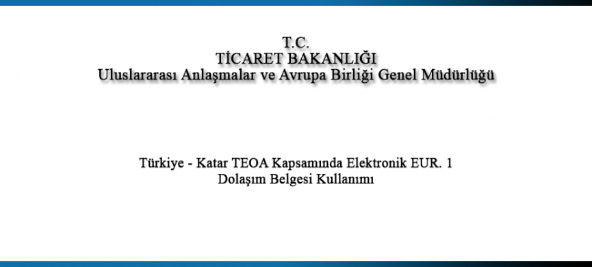 Uluslararası Anlaşmalar ve Avrupa Birliği Genel Müdürlüğü / Türkiye - Katar TEOA Kapsamında Elektronik EUR. 1 Dolaşım Belgesi Kullanımı