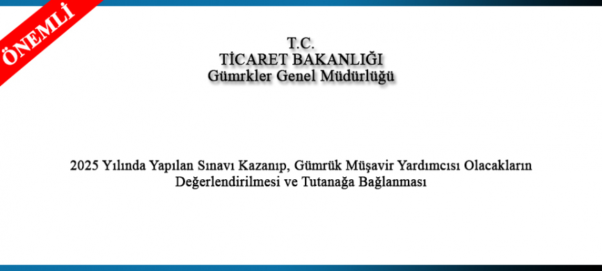 GGM / 2025 Yılında Yapılan Sınavı Kazanıp Gümrük Müşavir Yardımcısı Olacakların Değerlendirilmesi ve Tutanağa Bağlanması