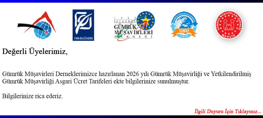 Dernekler Ortak Duyurusu / 2026 Yılı Gümrük Müşavirliği ve Yetkilendirilmiş Gümrük Müşavirliği Asgari Ücret Tarifesi Hk.