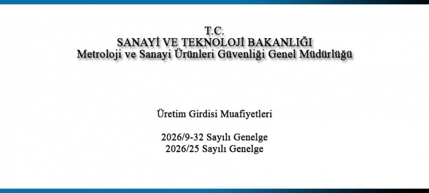 T.C. Sanayi ve Teknoloji Bakanlığı / Metroloji ve Sanayi Ürünleri Güvenliği Genel Müdürlüğü / Üretim Girdisi Muafiyetleri (2026/9-32 Sayılı Genelge - 2026/25 Sayıı Genelge)