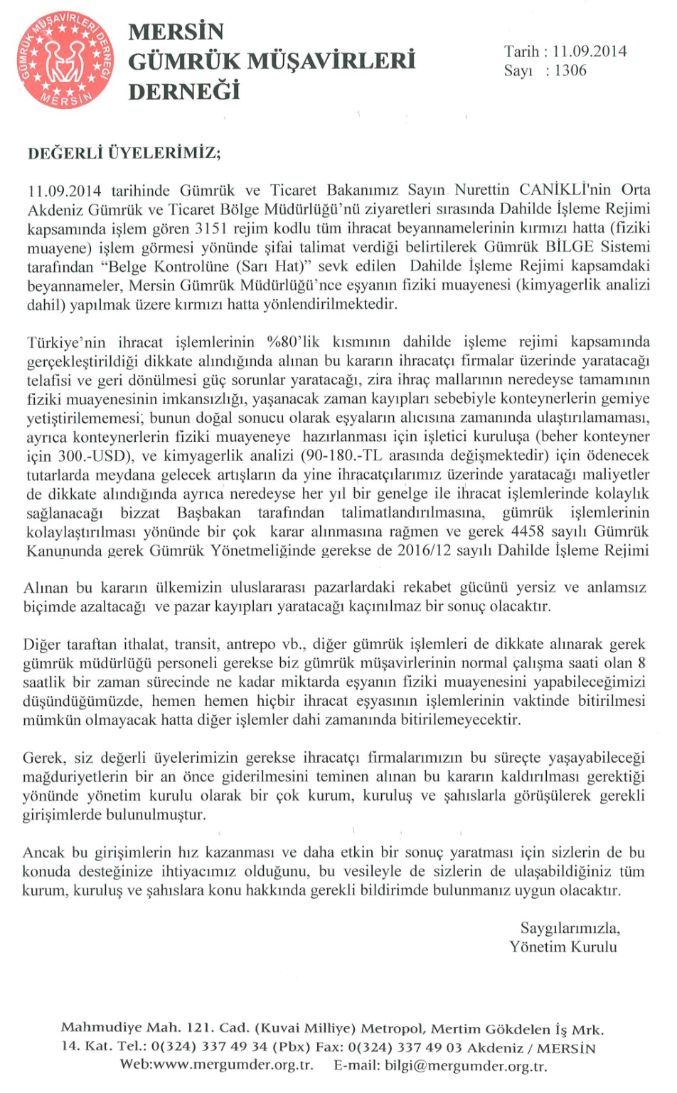 DİİB Kapsamındaki İhracat Beyannameleri İle İlgili Uygulama Hk.