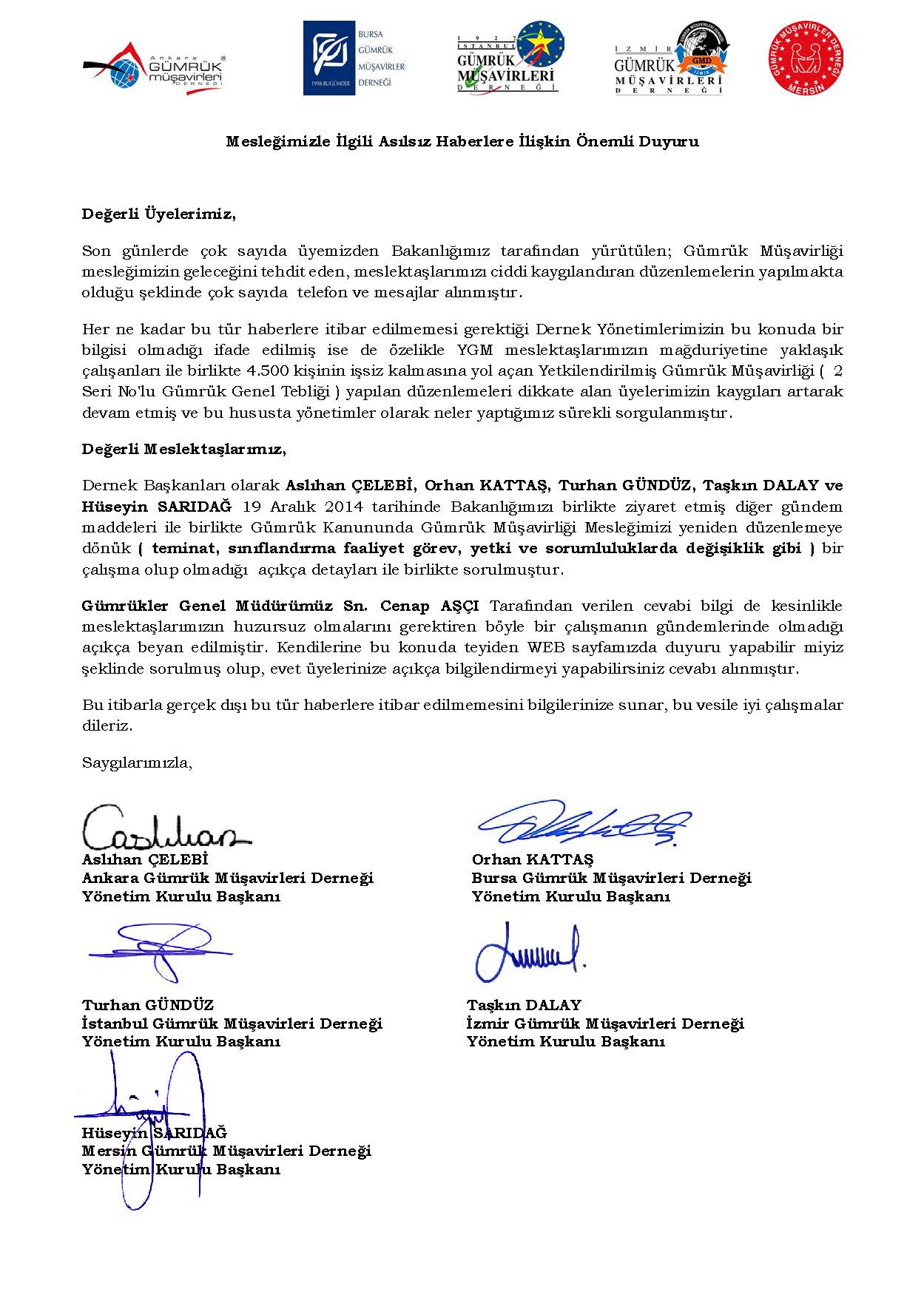 - Dernekler Ortak Duyurusu / Gümrük Yönetmeliği Uygulamasının Süresinin Uzatılması Hk.
