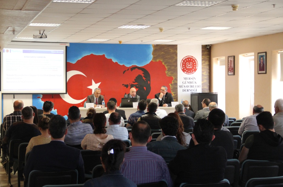 04.04.2016 Pazartesi günü 14.00 – 17.30 saatleri arasında "Türk Standartları Enstitüsü (TSE) ve Dış Ticarette Risk Esaslı Kontrol Sistemi (TAREX)" konulu seminer meslektaşlarımızın katılımı ile gerçekleşmiştir. Konuşmacı olarak, Derneğimiz Yön.Kur.Başkanı Sn. Hüseyin SARIDAĞ, T.C. Ekonomi Bakanlığı Ürün Güvenliği ve Denetimi Genel Müdürlüğü İthalat Denetimleri Eski Daire Başkanı Sn. Bümin Kaan KÖKTÜRK, Türk Standardları Enstitüsü Mersin Müdürü Sn. Güven SAVUR yer almıştır. Konuşmacılar tarafından yapılan sunumların ardından soru cevap bölümü gerçekleşmiştir.