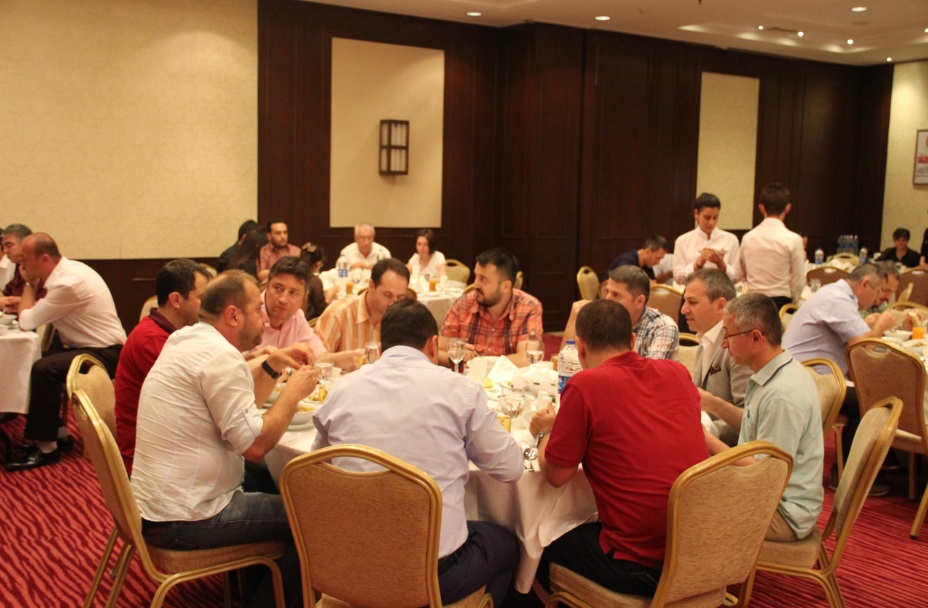 Derneğimizin Geleneksel İftar Daveti 15 Haziran 2016 tarihinde Hilton Otelinde gerçekleşti. Orta Akdeniz Gümrük ve Ticaret Bölge Müdürlüğü yetkilileri ile birçok meslektaşlarımızın katıldığı iftar yemeğinde Yön. Kur. Bşk. Sn.Hüseyin SARIDAĞ ve Orta Akdeniz Gümrük ve Ticaret Bölge Müdür Yard.Sn.Hüsnü KORKMAZ kısa bir konuşma yaparak üyelerimizin Ramazanını kutlamışlardır. Ramazan ayının en güzel geleneklerinden, birlik ve beraberliğin göstergesi olan iftar yemeğimize gelerek bizleri onurlandıran üyelerimize teşekkür eder, sevdikleriyle daha nice güzel Ramazanlar geçirmelerini dileriz. Saygılarımızla, Yönetim Kurulu