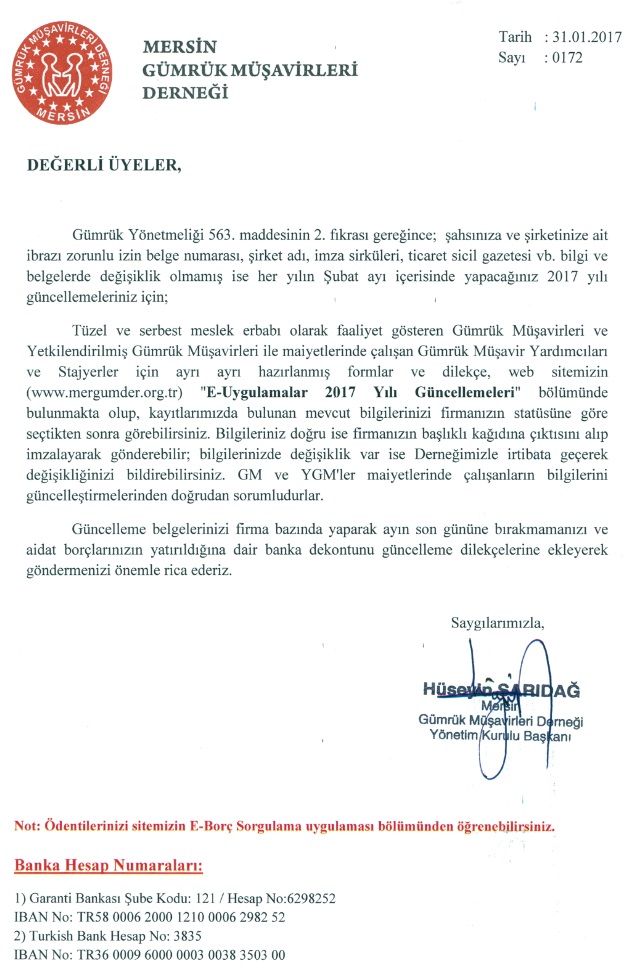 - Dernekler Ortak Duyurusu / Gümrük Yönetmeliği Uygulamasının Süresinin Uzatılması Hk.
