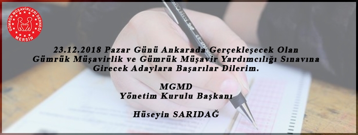 - Gümrük Müşavirliği ve Gümrük Müşavir Yardımcılığı Sınavlarına Girecek Adaylara Başarılar Dileriz