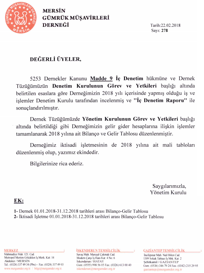 - Derneğimizin 2018 Yılı Mali Tabloları İçin Tıklayınız... - İktisadi İşletmemizin 2018 Yılı Mali Tabloları İçin Tıklayınız...