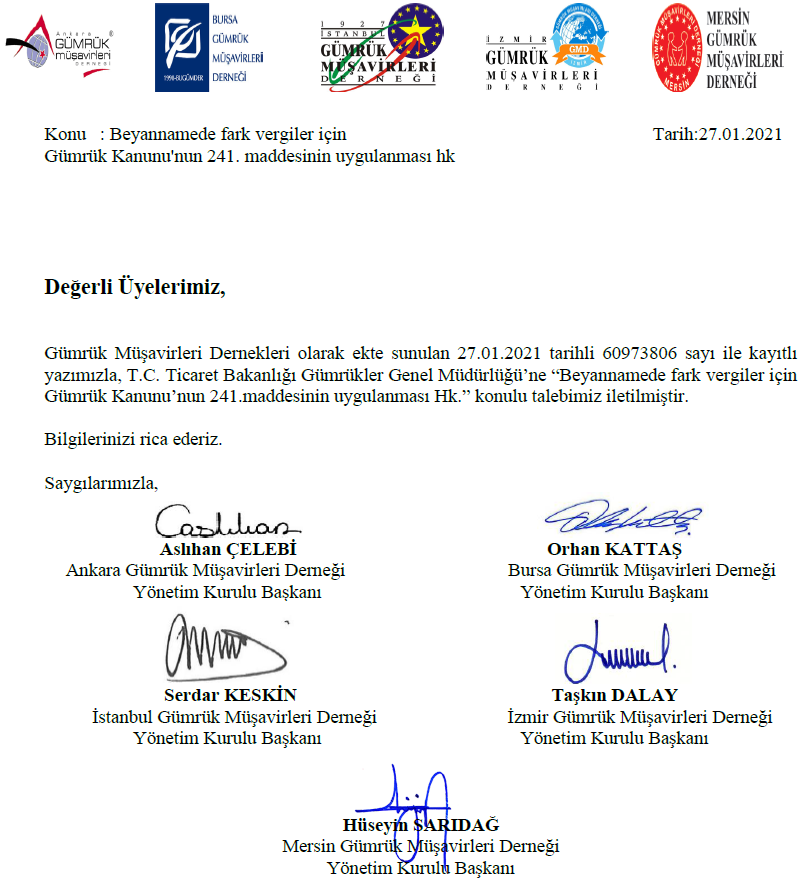 - Gümrükler Genel Müdürlüğü'ne yazılan Dernekler ortak yazısı için tıklayınız...