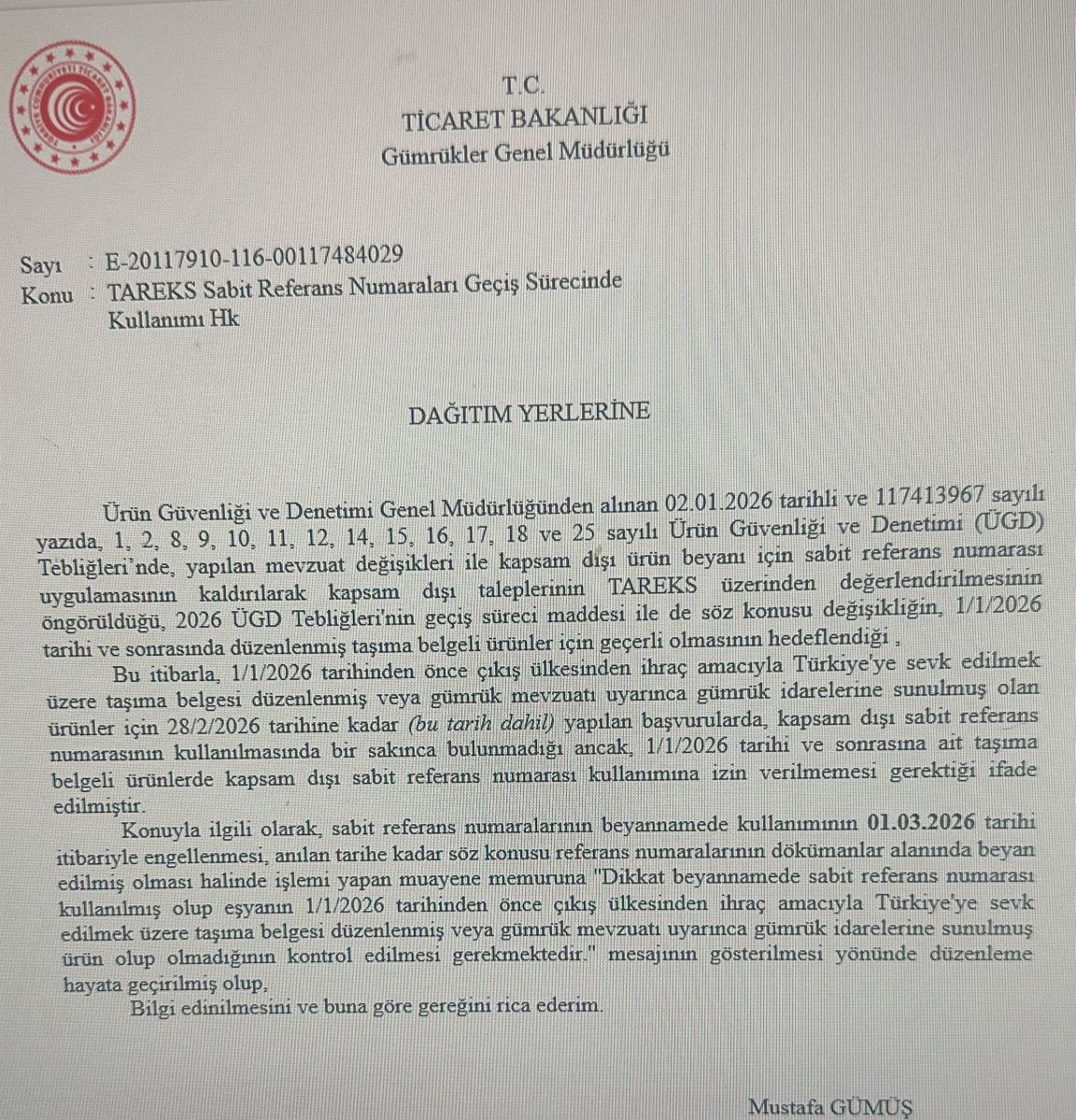 Dernekler Ortak Duyurusu / TAREKS Sabit Referans Numaraları ve Geçiş Süreci Hk.