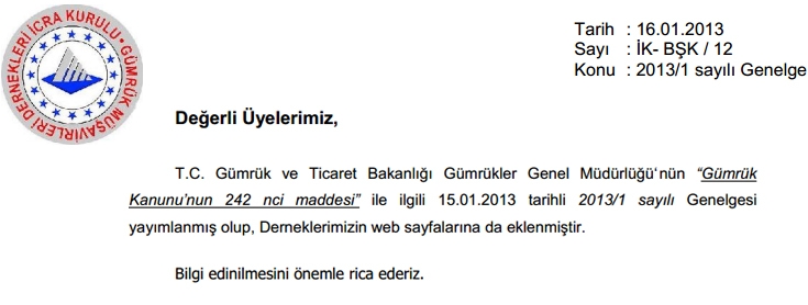 - Dernekler Ortak Duyurusu / Gümrük Yönetmeliği Uygulamasının Süresinin Uzatılması Hk.
