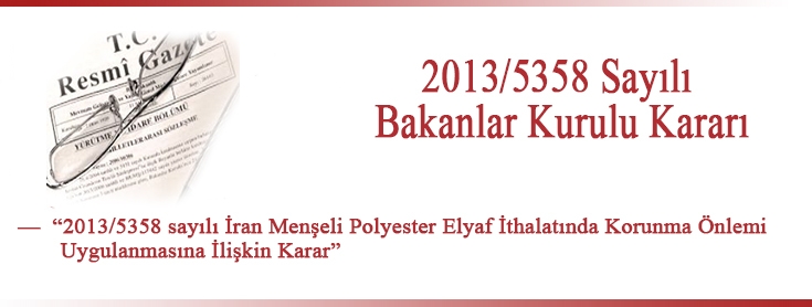 2013/5358 sayılı İran Menşeli Polyester Elyaf İthalatında Korunma Önlemi Uygulanmasına İlişkin Karar