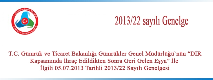 "DİR kapsamında ihraç edildikten sonra geri gelen eşya" ile ilgili 2013/22 sayılı Genelge